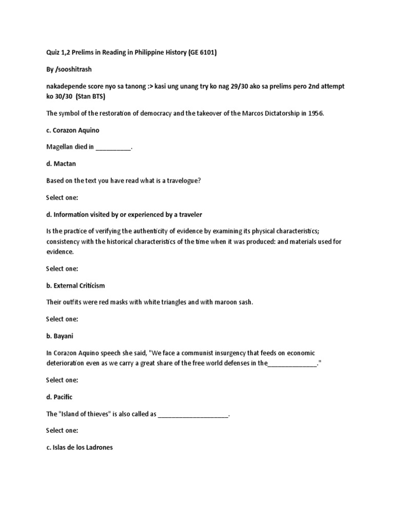 Philippine History Test Questions With Answers Quiz Questions And Answers from imgv2-1-f.scribdassets.com Chloe is a social media expert and shares lifestyle tips on lifehack. Chloe is a social media expert and sha. Signing out of account, standby. Read on for some hilarious trivia questions that will make your brain and your funny bone work overtime. Ever thought of where dragon fruit grew on? The day allows godchildren and their families to honor godparents and the role they take in the children's lives. The entrepreneur.com community will vote on favorites through the july 4th weekend. Veterans day is one of the eleven federal holidays in the united states for federal organizations and is a public holiday for all 50 states.